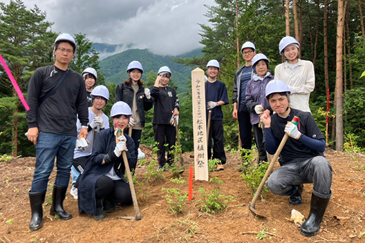 県主催の植樹祭に参加し、社員自らの手による植樹活動も行っています。長野県の豊かな緑をこの先も永く残していきたいと考えています。