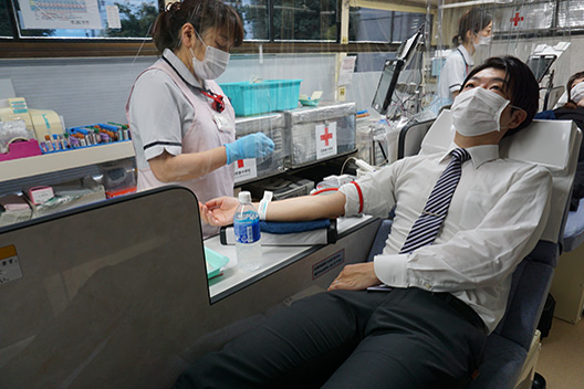年に2回、献血車の来社を依頼し、集団献血を実施。「人のために自身に何ができるか」という考え方をこれからも大切にしていきます。